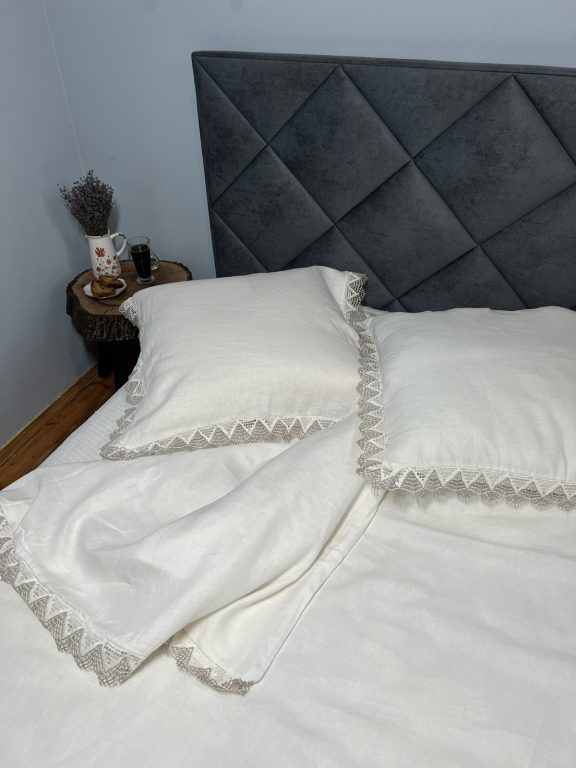 Погрузитесь в мир уюта и роскоши с натуральным льняным постельным бельем с рижским кружевом!