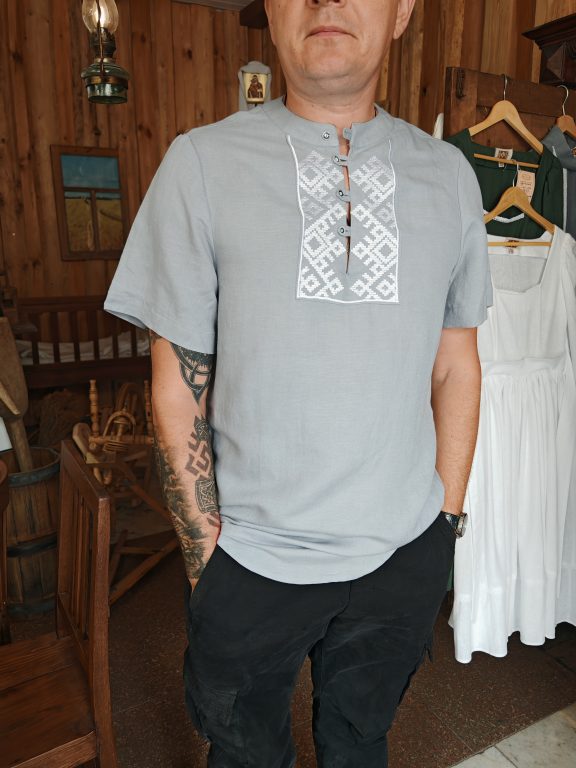 Мужская льняная рубашка с вышивкой серая