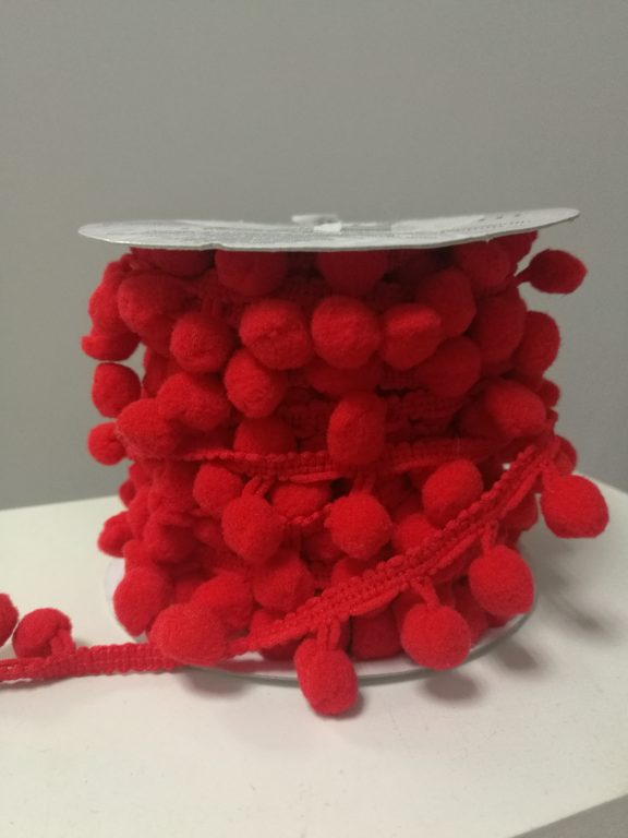 тесьма с помпонами красная для отделки изделий. Ширина 21 мм, состав 100% пэ
