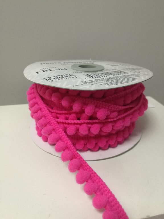 тесьма с помпонами цвет розовый для отделки изделий. Ширина 10 мм, состав 100% пэ