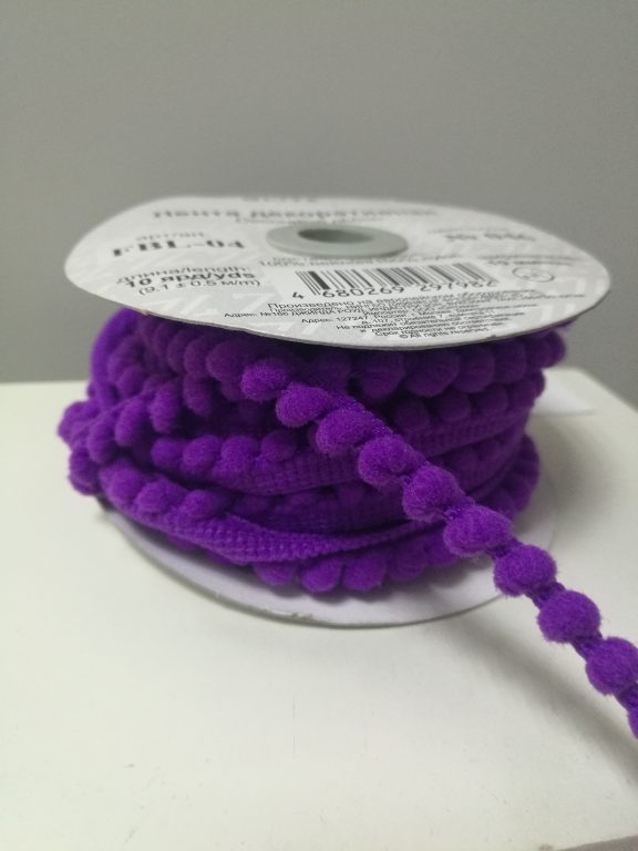 тесьма с помпонами цвет фиолетовый для отделки изделий. Ширина 10 мм, состав 100% пэ