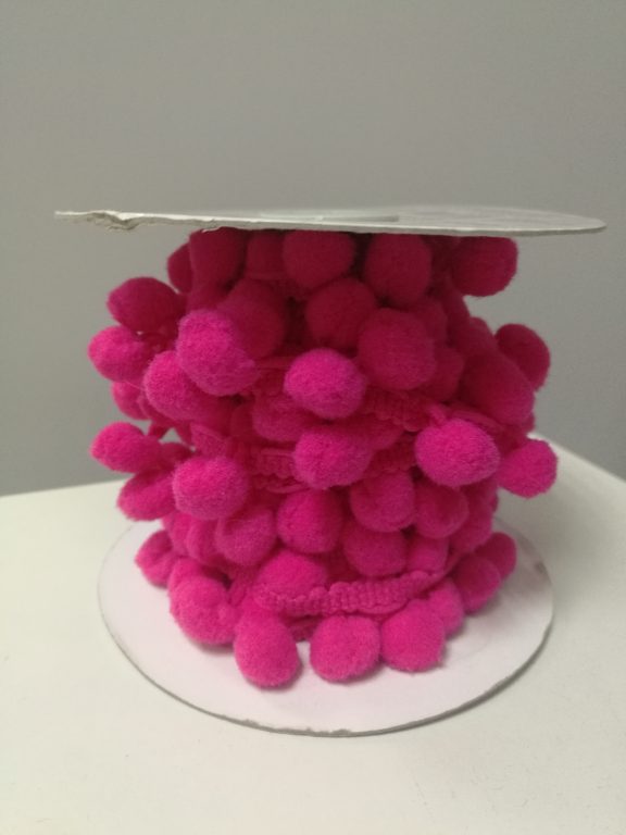 тесьма с помпонами ярко-розовая для отделки изделий. Ширина 21 мм, состав 100% пэ