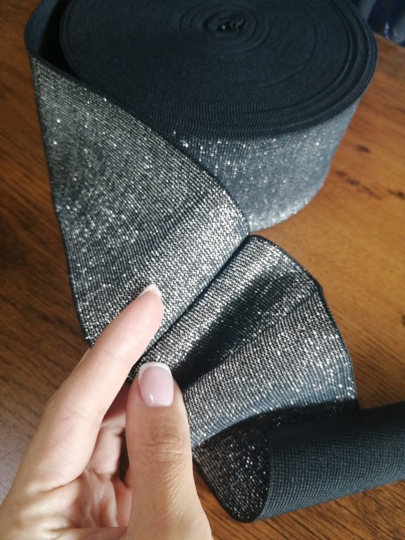 эластичная лента (резинка) блестящая, черная с серебром 75 мм